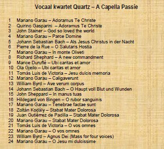 Teksten van de cd 'A Capella Passie'.